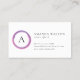 Modern business referral card featuring a simple yet professional design with your monogram inside of a pink and purple circle.