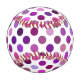 This design features a beautiful and artistically appealing pattern of polka dots in various shades of pink and purple.