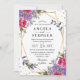 Pink and Purple Spring Flowers Gold Frame Wedding Invitation