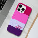 A trendy iPhone 16 Pro case featuring a pink and purple stripes pattern. Stylish and modern, this personalized accessory adds a unique touch while keeping your device protected.