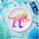 Pink and Purple T-Rex Dinosaur Tennis Player Paper Plates