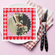 Add a sweet pop of retro charm to your celebration with this pink and red wedding napkin, designed to impress! The bold checkerboard border in rich red and playful pink frames your favorite couple photo, highlighted by a scalloped edge detail. The word “Cheers!” adds the perfect festive touch, with customizable text for names and your special date.