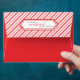 This fun Christmas envelope features a diagonal pink and red stripe on the back flap with the quote "most wonderful time of the year." You can add your name and return address on the front side.