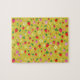 Pink and Red Strawberry Fields on Chartreuse Jigsaw Puzzle