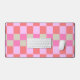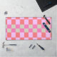 Pink and Sand Beige Retro Checkerboard Pattern Desk Mat