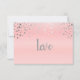 Wedding RSVP Card. Featuring a modern wedding styled rsvp in a pink background with silver confetti dots and the word love in bold print. 100% Customizable. Ready to Fill in the box(es) or Click on the CUSTOMIZE button to add, move, delete, resize or change any of the font or graphics. Made with high resolution vector and/or digital graphics for a professional print. NOTE: (THIS IS A PRINT. All zazzle product designs are "prints" unless otherwise stated under "About This Product" area) The design will be printed EXACTLY like you see it on the screen and on the product...so please make sure when you do your changes on the resizing of any of the graphics or text that it fits in the areas correctly and that your spelling and wording is how you like it to be in size, color and font. Thank you for the support and stopping by my store - LetsUDesignIt