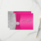 ****Please note that the ribbon and jewels are PRINTED ON images, and are not real. This stunning hot pink and silver gray floral damask Quinceanera RSVP card has a PRINTED on fuchsia pink ribbon and a silver and crystals jeweled medallion with a tiara or crown on it. It matches the Quinceanera invitation shown below. The text and paper choices are fully customizable. If you require any matching items, please email your request to niteowlstudio@gmail.com.