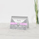 Elegant printed pink satin ribbon with diamond center and silver diamond lace overlay thank you card.