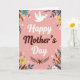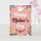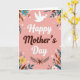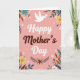 This Mother's Day card features a soft pastel pink background with “Happy Mother’s Day” centered in the middle, where “Happy” and “Day” appear in white flowing lettering and “Mother’s” is set in deep brown for contrast. A white bird silhouette with wings spread glides above the words, as if hovering protectively over the message ❤️. Around the edges, stylized flowers and leafy sprigs in teal, sunny yellow, earthy brown, and soft white spill in from the corners, creating a gentle, affectionate frame. The floral shapes lean inward like a quiet embrace, adding a tender, caring tone through their close, gathered arrangement. Small white dots are sprinkled across the pink field, giving the background a light, airy texture. Faint, pale-pink cloud-like patches sit behind the lettering, softening the center area and drawing the eye back to the text. Teal leaves, yellow blossoms 🌼, and white petals cluster most densely at the corners, with thinner stems and dots trailing along the sides.