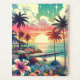 Personalized planner. Beach art in teal, pink and turquoise with a pop art comic book style. Palm trees, beach house, tropical flowers and a glorious sunset.