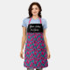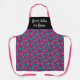 Pretty home, kitchen, garden, hair salon or hairstylist apron with black background with repeating pattern of vibrant pink and turquoise roses. Add your personal name or salon business company name in fun script handwritten style font. Create a one of a kind colorful floral apron for the hairdresser whether one or many, no minimum order, no design fee.
