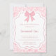 Pink and white floral with bow baby shower invitation