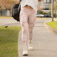 An awesome pair of leggings or yoga pants featuring a trendy and elegant pink and white floral mandala pattern. A great boho style look for a yoga enthusiast or someone who likes to work out in pretty pink and white designs.