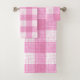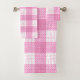 Pink and White Bold Checkered Plaid Design Bath Towel Set