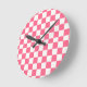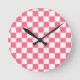 Pink and White Checkered Pattern Round Clock