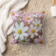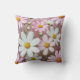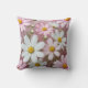 Delicate pink and white daisy flowers with yellow centers are set against a soft blurred pink background