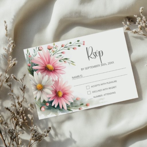 Pink and White Daisies Wedding Details Enclosure Card