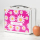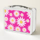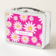 Cute daisies adorn this awesome pink and white lunch box. This vintage look lunch box will bring a little joy and brighten the day. A good back to school gift for a girl. Also a nice item to get your little one started in kindergarten. Please be sure to change the name or leave it black for a lunch box with only daisies on it.