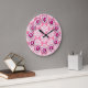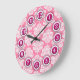 Pink and white is always appropriate for a girls room, a feminine washroom, or a boudoir. The pattern on this wall clock is rich damask style, the numbers surrounded by a deep berry colored circle for easy reading.