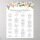 Use our pink and white flower wedding seating chart to let your guests know their seating assignments. This design has guests arranged by alphabetical order - be sure to look for our table number version if you prefer that. The wording is completely customizable. Use Zazzle's "Personalize this template" tool to enter your wedding guest information.To add or remove tables or change the placement of the text boxes, font color or size just click on the "Click to customize further" button to change those things. Be sure to check out our large selection of coordinating items by browsing the Pink, White, and Green Floral Wedding collection!