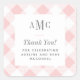 The perfect finishing touch for a baby shower or spring time Southern garden party favor, this pale blush pink and white gingham patterned sticker has an easy to edit three-letter monogram and custom message text to tell your guests how much you appreciate them.