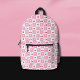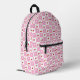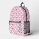 A whimsical pink and white Gingham pattern backpack with a cherry theme .