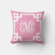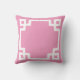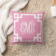 Pink and White Greek Key Script Monogram Throw Pillow