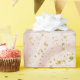 A pink and white marble swirl pattern with gold flecks wrapping paper.