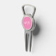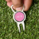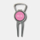This modern divot tool design features a bright pink background, with your initials in bold white text for a look that is simple and stylish, yet professional.