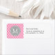 Bubblegum Pink and White Modern Moroccan Return Address Labels with Monogram. Gray dotted circle.
