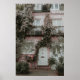 PINK AND WHITE PAINTED HOUSE COVERED WITH PLANTS A POSTER