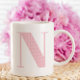Create your own monogrammed white polka dot name design on a coffee cup.