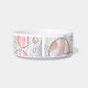 This is a heavy, durable bowl decorated with Tibbies of many colors, the perfect size for hungry/thirsty Tibs. The design is interesting and printing clear.