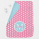 Pink and White Polka Dots With Blue Monogram Baby Blanket