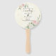This stunning round wedding program fan from the Pink and White Rose Dusky Blooms collection features delicate pink and white roses accented with gold confetti. A soft watercolor wash, available in light green, yellow, and pink, adds a subtle and romantic touch. Perfect for keeping guests cool while serving as a beautiful keepsake, this fan offers a timeless design ideal for any elegant wedding theme. Celebrate your day in style with this blend of floral charm and sophistication.