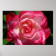 Pink and White Rose poster. A beautiful pink and white rose with white interior petals and dark pink trim around the edges surrounded by a soft green background of rose leaves. Looks beautiful for weddings, showers, and summer parties. A great gift for fans of floral photography, roses, and flower art.