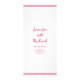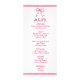 The simple budget wedding menu card for a wedding is beautifully designed with a touch of vintage style. The card showcases a scribble whimsical bow and hand drawn typography in magenta and white. There are also two borders at the upper and bottom parts and a pink and white striped pattern.