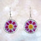 Look glamorous with these stylish, sterling silver plated drop earrings designed for pierced ears that feature the photo image of a pink and white petaled, single Dahlia flower with yellow center. A lovely, floral design! Makes a great gift for birthdays, holidays, etc.