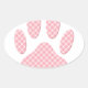 Pink And White Tartan Dog Paw Print Oval Sticker