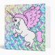 Cute White Unicorn with Pink hair and wings with a pattern of Unicorn background in gradient blue. Fully customizable. The Big Unicorn can be moved around and resized.