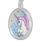 Pink and White Unicorn Graphic Silver Plated Necklace