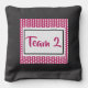 Cheerful, bright, and busy pink pattern that will stand out in your backyard, at the tailgate, or at the beach. Light pink and white rectangles tiled and bricked to form vertical stripes, shown on a bright pink background. Template for team names, in the same bright pink as the background. Background is customizable. Experiment with different background colors to create a combination that works for you.