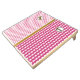 Pink and White Vertical Stripes and Rectangles Cornhole Set