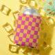 Pink and Yellow Checkerboard Can Cooler