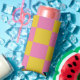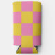 Pink and Yellow Checkered Pattern Seltzer Can Cooler