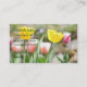 A lovely photo of a garden of pink and yellow tulips, filling the frame of the business card. Size the image way down or up more, and move it around, and remember to test out all the great background color choices and fonts! Just click on "customize it." Great for massage therapists, acupuncturists, reiki masters, yoga studios, or healing touch practitioners. Plenty of paper choices to choose from, too.