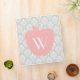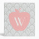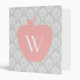 A teacher binder featuring a gray damask design. Personalize with your monogram on pink apple on front.