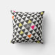 Pink Aqua Yellow Gray Abstract Triangle Pattern Throw Pillow