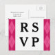 Classic and elegant Argyle Wedding RSVP Postcard with a simple pink diamond argyle pattern background. Easy to customize with your wedding details. For more customization options, click on the Customize It button.