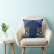 Pink Arty Flowers on Navy Blue-Fabric texture Throw Pillow